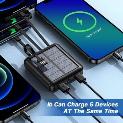 10000mAh Mini Solar Power Bank with Built-in 4 Cables and Flashlight