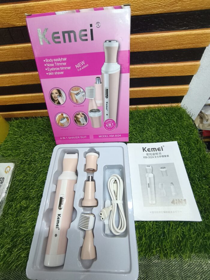 Kemei KM-6637, a 4-in-1 rechargeable lady shaver and grooming kit.