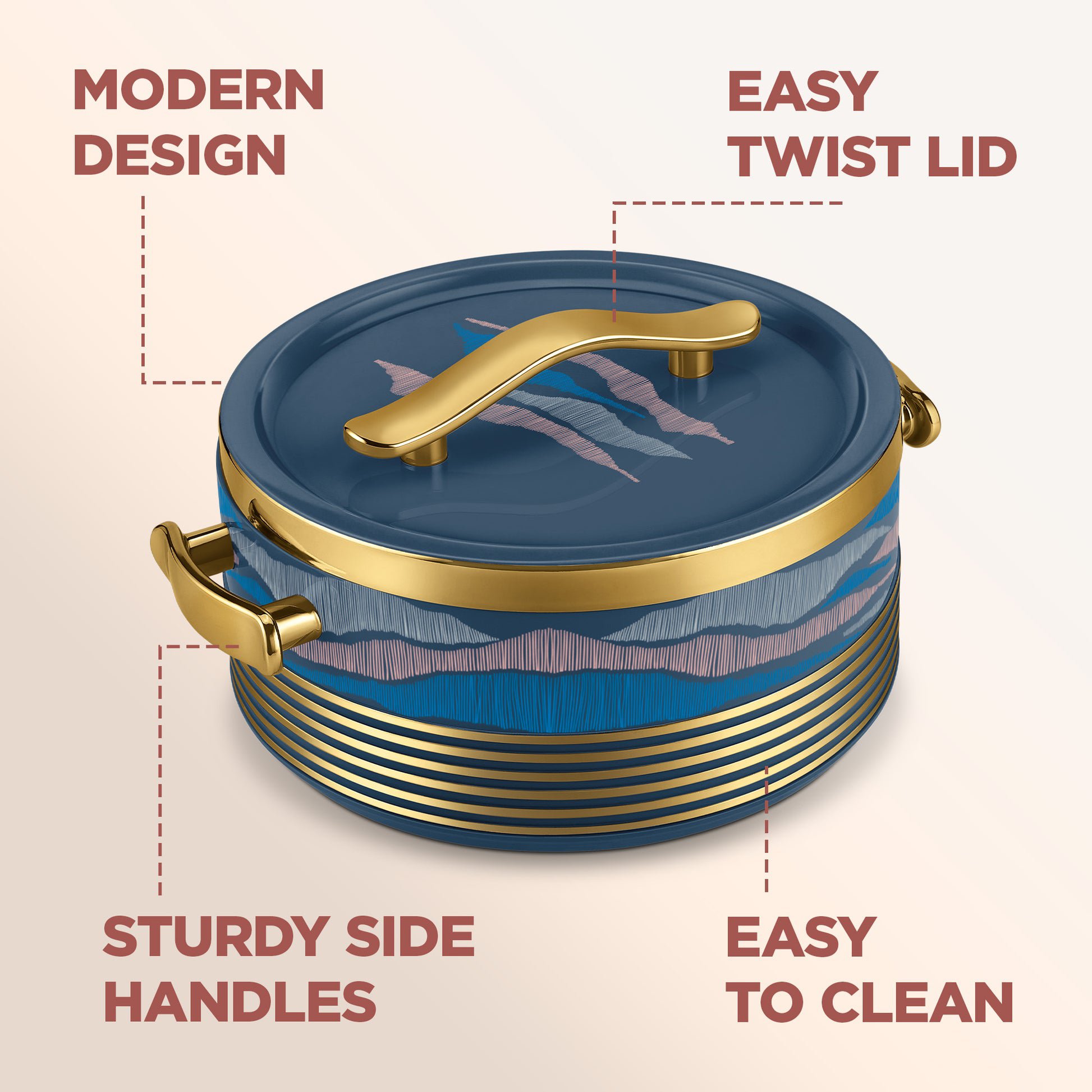 • It includes a secure lid with a stylish gold-toned handle.